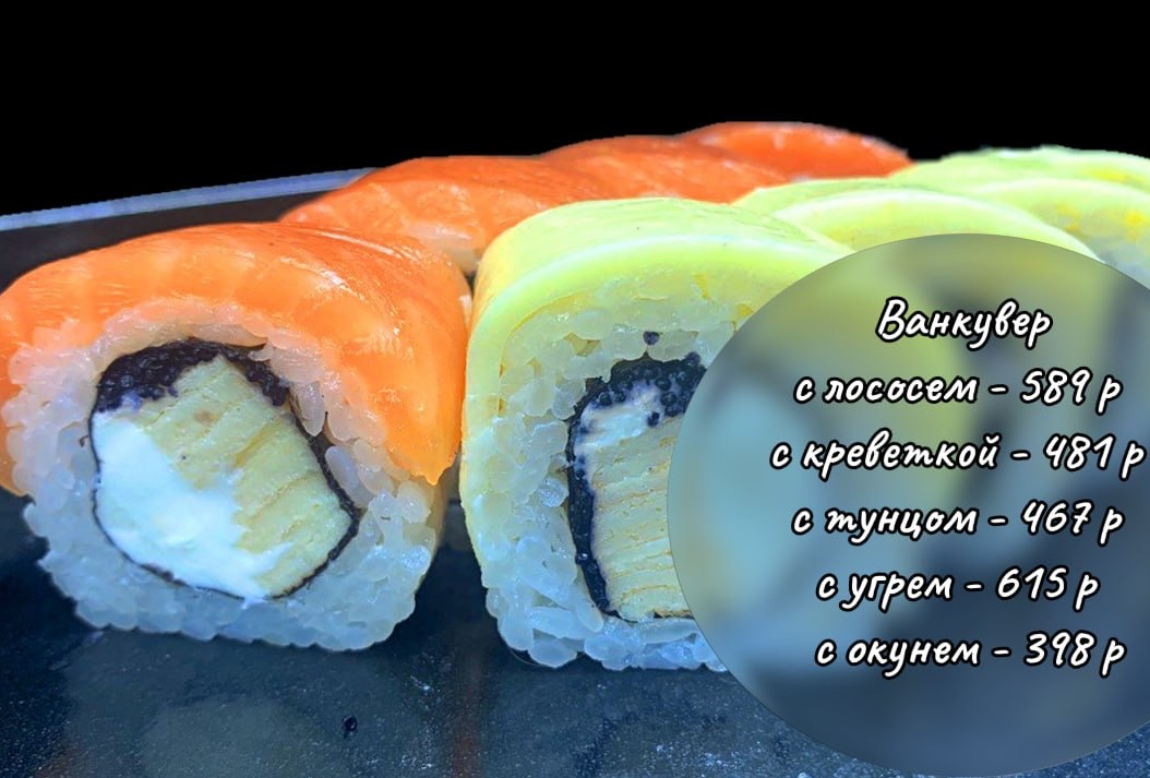 В состав ролла входит - нежный сливочный сыр, томаго омлет и сверху продукт на выбор.