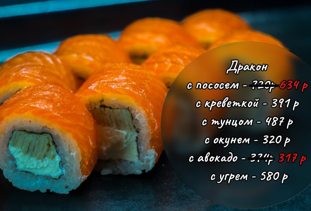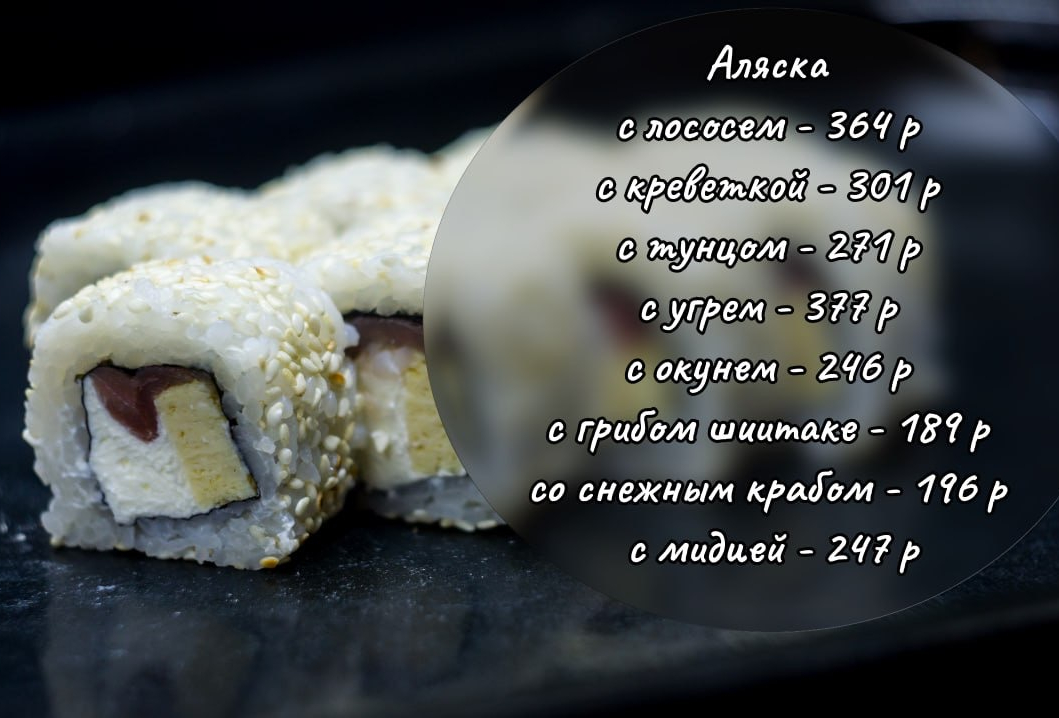 В составе идет нежный сливочный сыр, икра масаго, хрустящий огурец и продукт на выбор
