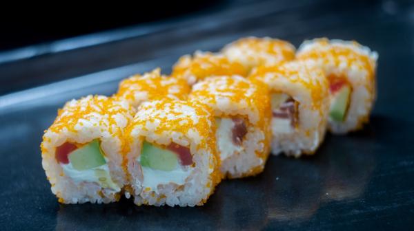 Состав: маменори, сливочный сыр, авокадо, икра масаго, тунец